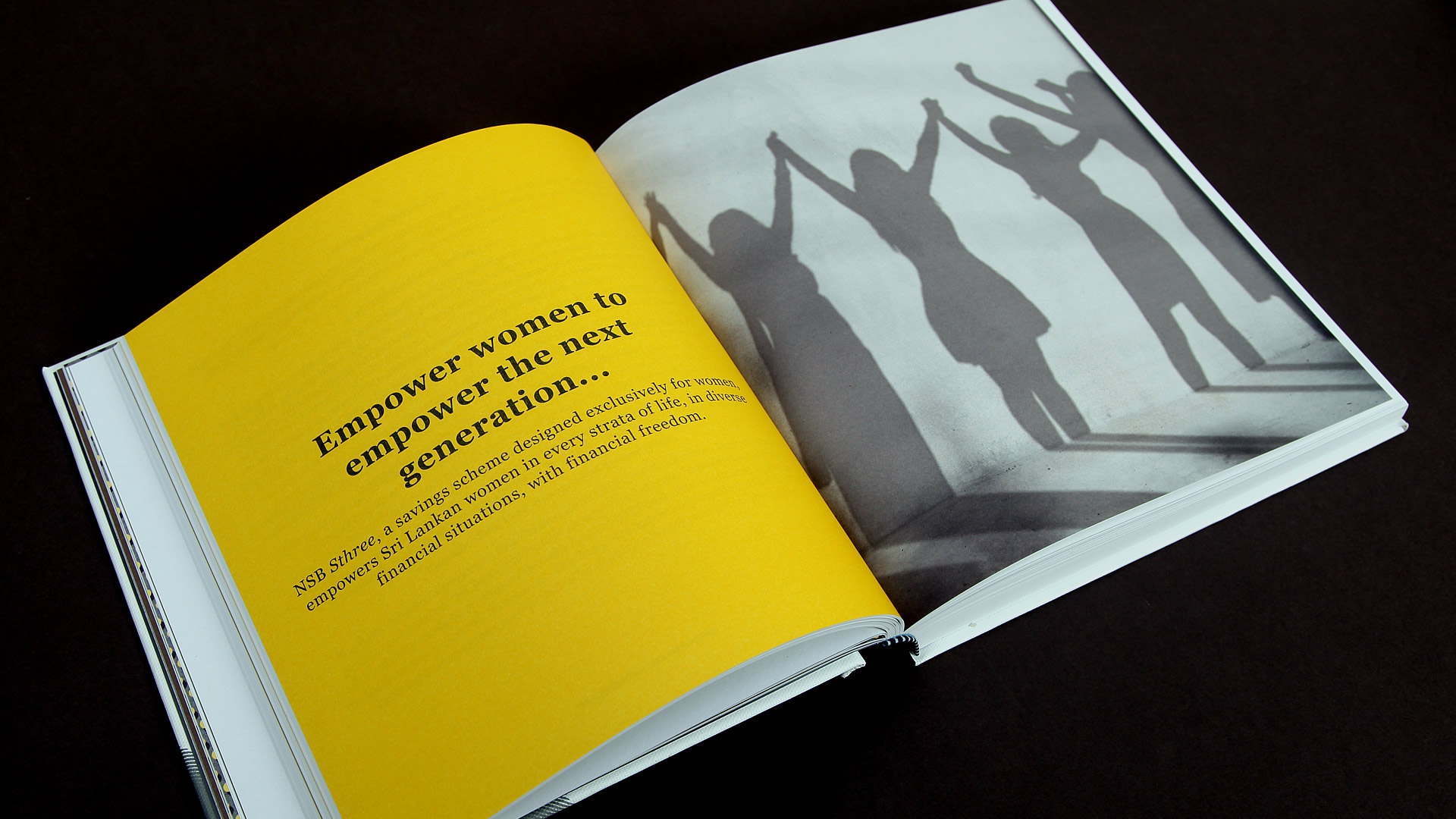 Throughout the trilogy the design element of the pillar was utilised to embody NSB’s Mission, Vision, and Values, its stability and rootedness as a premier financial institution, and the Bank’s commitment to empower the Nation to achieve financial security. In A Unique Story: The Impression, the pillar motif reached completion, providing shade to the Nation. “The Impression” refers to the impression the Bank has made on Sri Lanka, the financial sector, and more importantly, all the lives it has touched throughout its unique history.